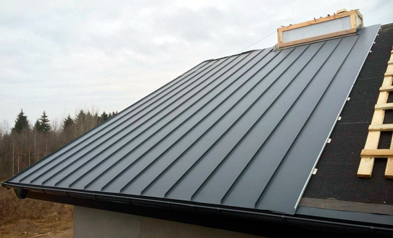 Главная особенность этого материала – легкость монтажа. Листы крепятся к обрешетке саморезами через отверстия вдоль замочной части кровли без использования специального оборудования.