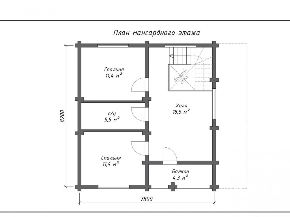 На первом этаже дома расположены гостиная, кухня, большой санузел, топочная, тамбур и холл. В гостиной и кухне окна выходят на две стороны, благодаря чему эти комнаты наполнены естественным светом. Это не только делает их уютнее, но и позволит экономить электроэнергию на их освещение. В мансардном этаже расположены две спальни, второй санузел, а также просторный холл со вторым светом и балконом. Наличие второй ванной комнаты в семьях, где больше 2 человек, просто необходимость, и это очень удобно.