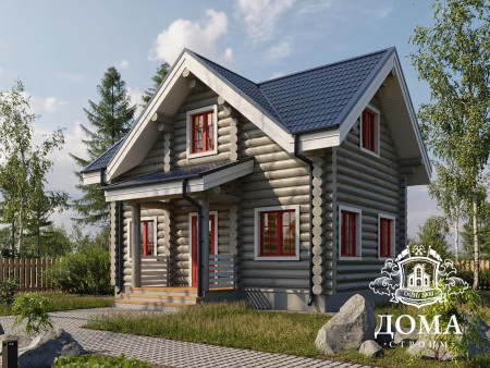 «Лесные угодья» — проект дома из оцилиндрованного или рубленого бревна, его общая площадь — 83 м². Сруб обработан антисептиком,