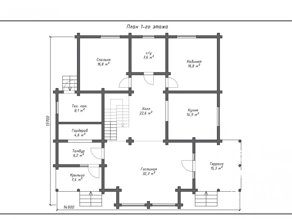 - Два входа, крытое крыльцо, терраса.