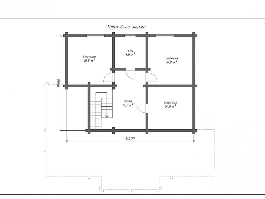 Входов два, с террасы в гостиную и через крыльцо с тамбуром. В мансардном этаже расположены две спальни, санузел, игровая и просторный холл. Разумеется, вы можете использовать каждую комнату так, как захочется: например, выделить место для гостей, которые остаются на несколько дней, превратить кабинет в мастерскую и так далее. В этом и заключается главное преимущество собственного дома.