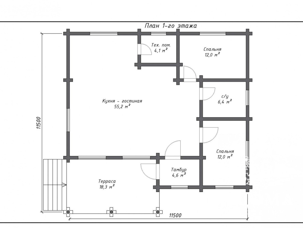 Бревенчатый дом по проекту «Загородный» идеален для семьи из 2–4 человек. Его общая площадь составляет 120 м², а главной особенностью проекта стала крытая терраса площадью 18 м2. С поздней весны и до самой осени вы сможете использовать ее, чтобы принимать гостей, устраивать семейные ужины и обеды на свежем воздухе. Планировка дома простая и функциональная, при необходимости вы можете внести в нее коррективы. Для строительства по этому проекту потребуется от 25 дней.