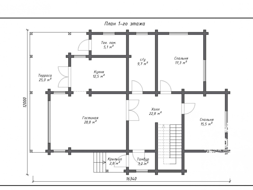 Материал стен: клееный брус 190×200 мм. с внутренними стенами;