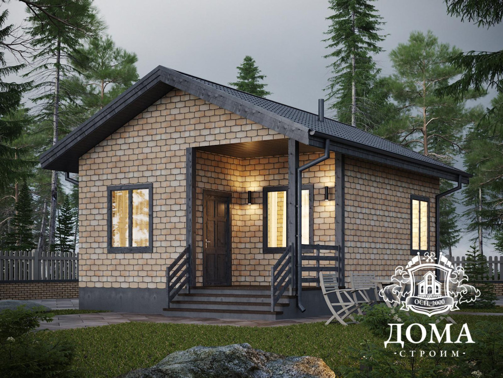 Проект «Ангел» — это уютный одноэтажный дом для 1–2 жильцов. Он идеально впишется в городской или загородный ландшафт, подойдет для небольших участков, станет хорошим вариантом дачного дома для сезонного проживания. Планировка предусматривает все необходимое для комфортной жизни.