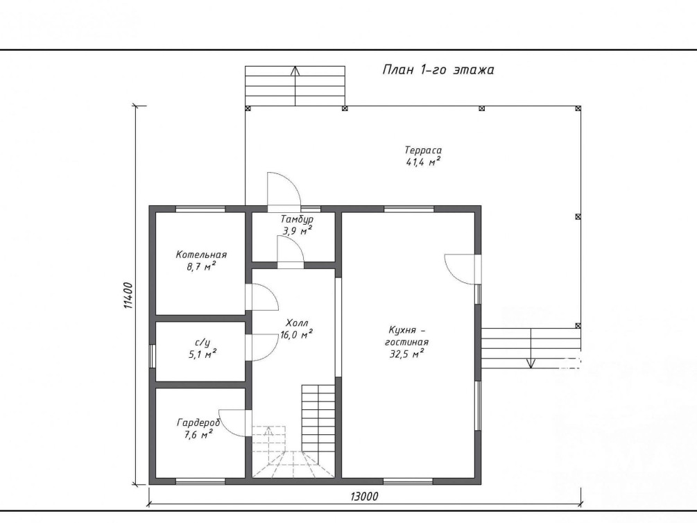 Не забыл создатель проекта о подсобных помещениях: на первом этаже для котельной выделено почти 9 м2, под гардеробную отведено 7, 6 м2. Большая гардеробная заменит сразу несколько громоздких шкафов и поможет организовать упорядоченное хранение вещей всей семьи.