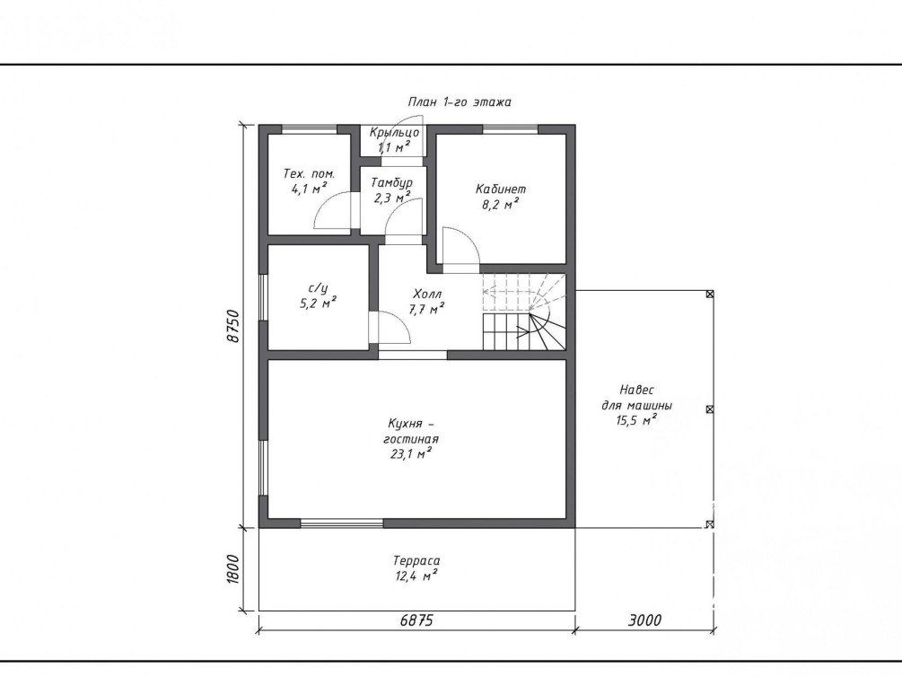 Мечтаете о том, как по утрам летом будете выходить на балкон собственного дома, с чашечкой кофе? Присмотритесь к проекту «Гавань», возможно, это именно то, что вам нужно. Общая площадь дома с мансардой и террасой — 150 м². На ней архитектор уместил все, что нужно для комфорта семьи: кухню-гостиную, два санузла, три спальни, кабинет и техническое помещение. Рядом с домом есть навес, который подходит и для стоянки автомобиля, и организации зоны отдыха.