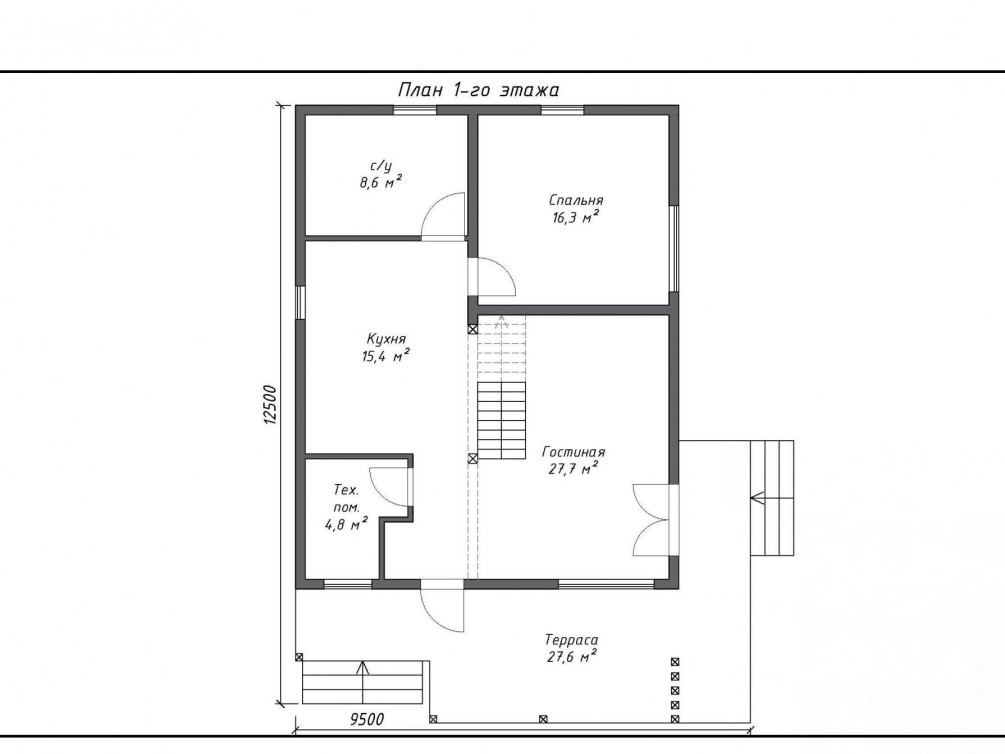 Строительство дома по этому проекту занимает от 25 дней. По вашему запросу планировка может быть изменена.