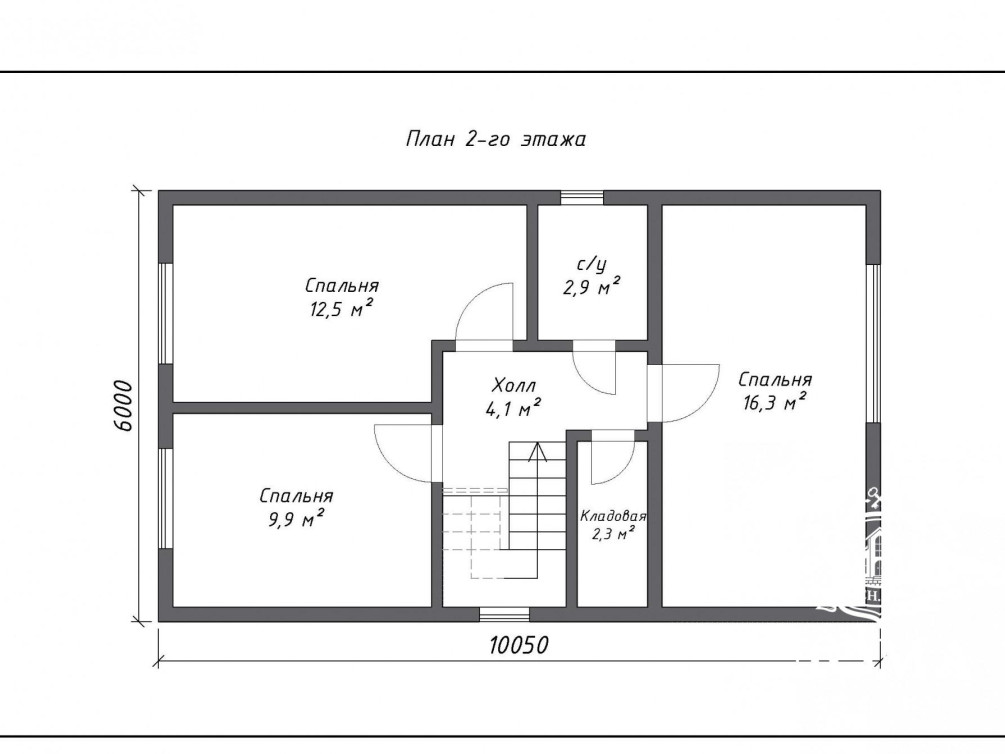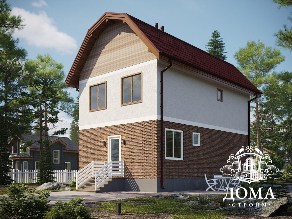 - Дом с полноценным вторым этажом подходит для небольших участков.