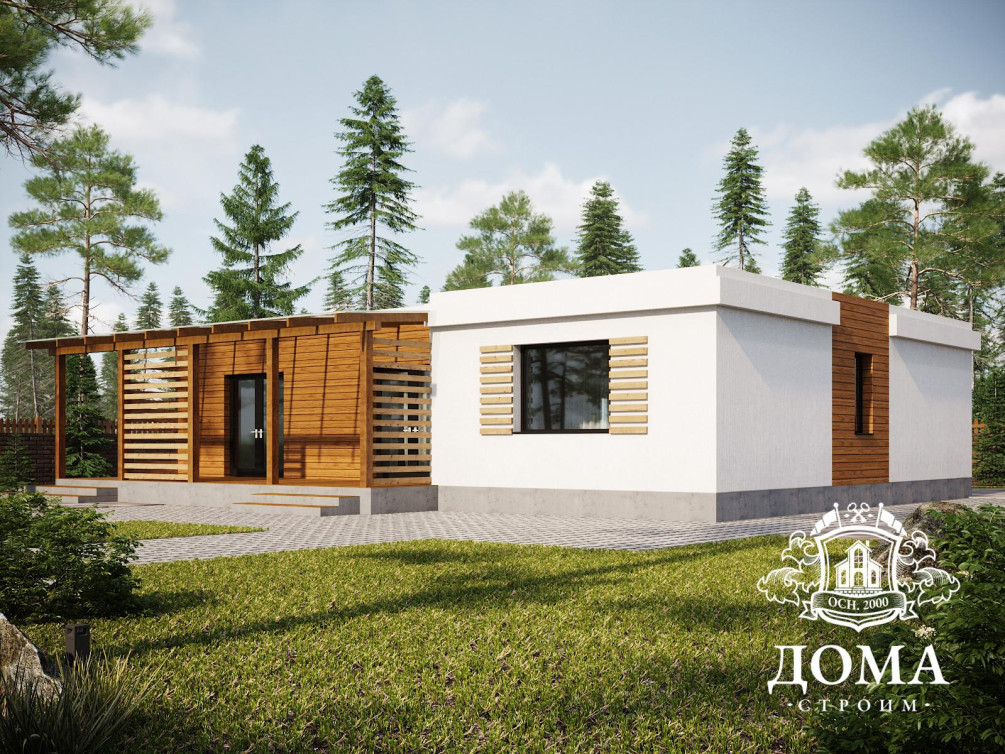 Одноэтажный дом в современном стиле по проекту «Левана» подойдет для больших участков — на одном уровне уместились и просторная кухня-гостиная, и три спальни, и два санузла. А еще — кладовка, техническое помещение, тамбур. В общую площадь, составляющую 207 м2, входят и две больших террасы. В теплое время года их можно превратить в лаунж-зоны, расставив там уличную мебель, шезлонги, вазоны с цветами.