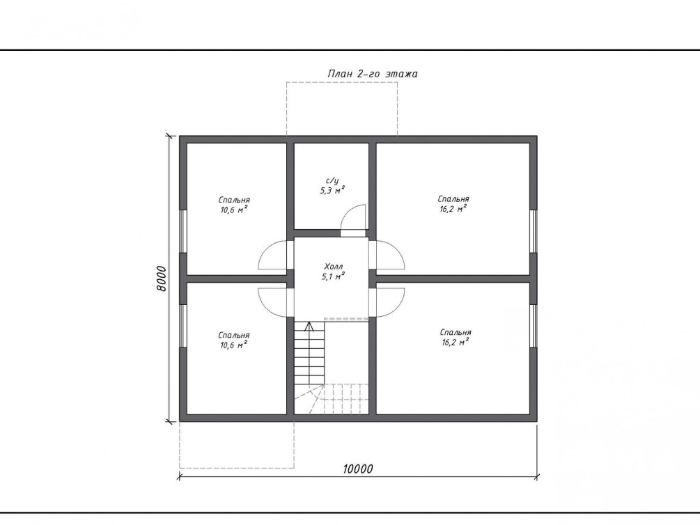 Санузлов в доме два, на каждом этаже, один площадью 4,2 м2, второй — 5,3 м2. Их площадь позволяет установить технику для стирки и сушки белья, душевую кабину или ванну по вашему вкусу. Есть и техническое помещение площадью 2,8 м2 для отопительного оборудования. Вся площадь дома использована рациональным образом, но планировка может быть изменена, если вам так захочется.