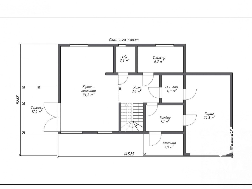 Строительство дома по проекту «Остин» занимает от 45 дней. Планировку можно поменять, если вам хочется расположить помещения иначе.