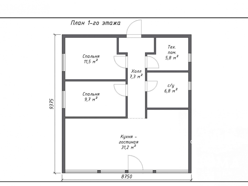 Строительство дома по проекту «Персей» занимает от 25 дней, не считая финишной отделки. Если захотите, мы внесем изменения в планировку.