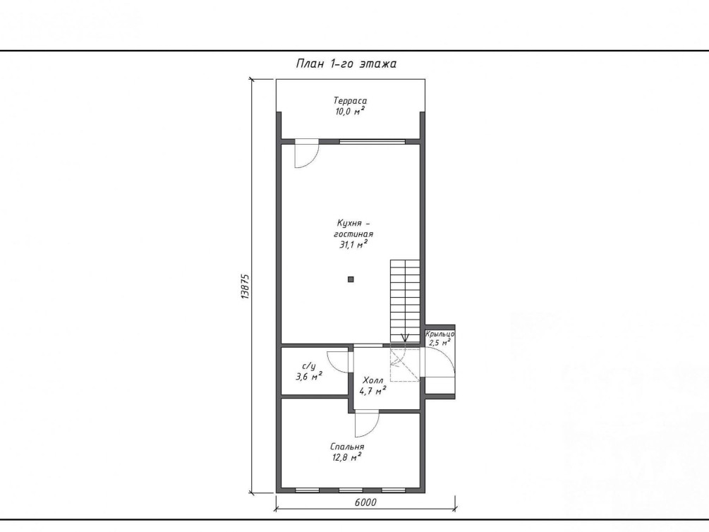 | Потолок: Высота 1 этажа: 2,8 м; Высота второго этажа min – 1,4 м, max – 3,5 м. | ||