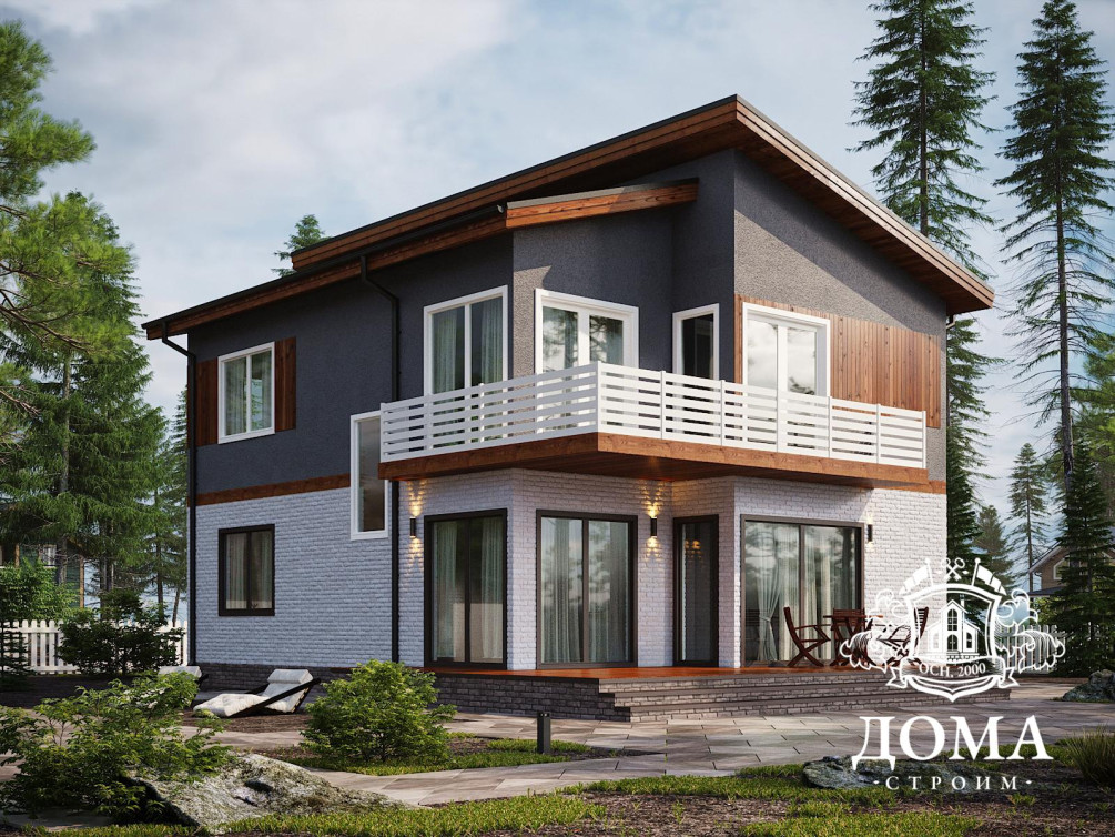 - Большой угловой балкон с выходами из кабинета и спальни на втором этаже.