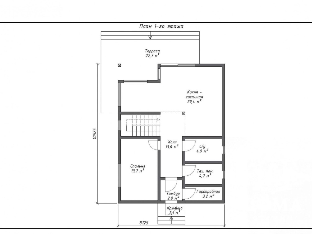 Строительство дома по проекту «Премьер» занимает от 35 дней, не считая финишной отделки фасадов, крыльца, балкона. По запросу заказчика планировка может быть изменена.
