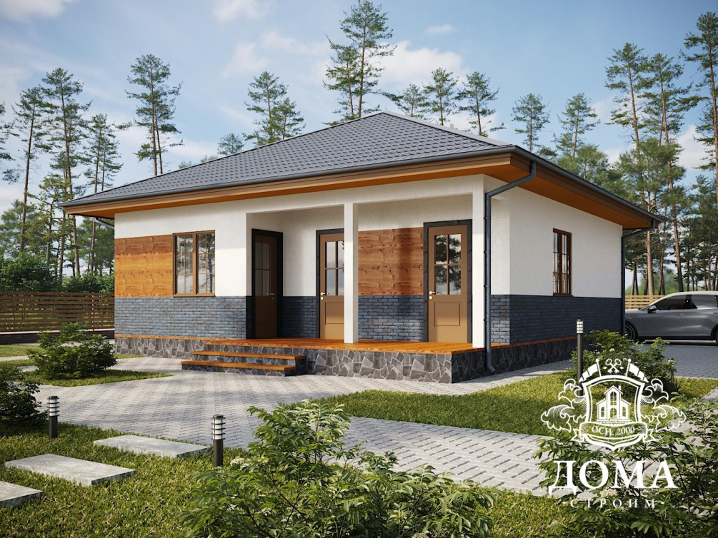 Планировка дома использует внутреннее пространство рационально: комнаты изолированы, санузел расположен недалеко от входа, под котельную выделено техническое помещение с отдельным входом с улицы. А вот кухню и гостиную решено было объединить — получилось светлое помещение площадью около 22 м2. Не забывайте, что планировку всегда можно изменить, просто сообщите нам о своем желании до начала строительства.