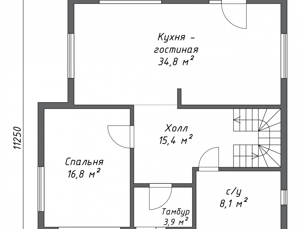 Планировкой предусмотрено объединение кухни и гостиной — такое решение свойственно европейским жилищам, оно зарекомендовало себя как удобное. Площадь кухни-гостиной — 34,8м2, благодаря чему вы не будете ограничены в зонировании пространства, а выход из комнаты на террасу вы обязательно оцените в теплое время года. В доме четыре спальни, а значит, места хватит всем, а при необходимости любую из них можно отдать под гостевую комнату, кабинет. Техническое помещение имеет отдельный вход с улицы.