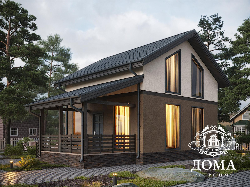 Дом с террасой общей площадью 110 м 2 идеально подойдет для небольшой семьи — его планировка продумана таким образом, чтобы у каждого было место для комфортного отдыха. В доме две спальни на мансардном этаже, три санузла, и, конечно, большая кухня-гостиная — обилие свободного пространства позволит организовать удобные системы хранения, создать зоны для работы, уединения или совместного времяпрепровождения. Большие окна наполнят дом естественным светом, а на террасе летом можно будет наслаждаться утренней чашкой кофе под пение птиц.