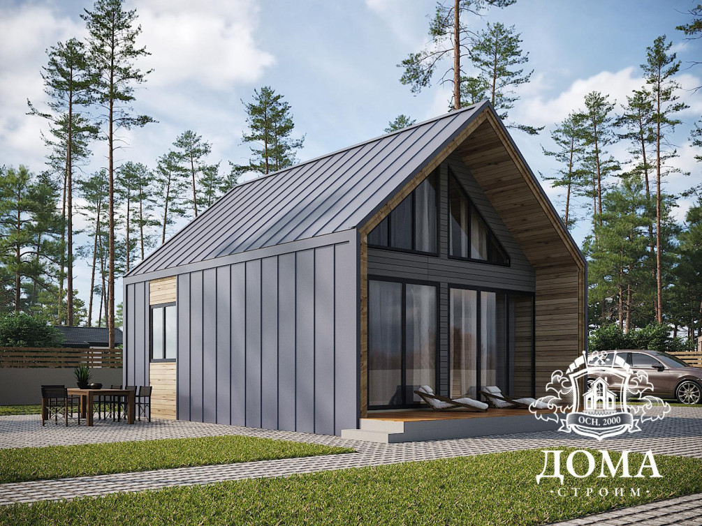 Небольшой дом по проекту «Барнхаус» — хороший выбор для семьи из 2–3 человек, а также оптимальный вариант дачного дома. Его общая площадь — 77 м², а строительство занимает всего от 25 дней. Строго соблюдение технологии сборки и использование пиломатериалов высокого качества позволяет нам гарантировать, что ваш дом будет теплым, красивым и уютным. Вы можете доверить нам и финишные работы, в частности, отделку фасадов и цоколя, монтаж водостоков.