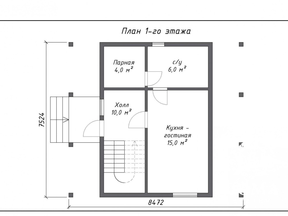 На первом этаже дома расположены парная, санузел и просторная кухня-гостиная площадью 15 м2. В мансардном этаже — две спальни и большой санузел. Такой дом рекомендуется использовать для сезонного проживания, но, если сделать перепланировку и выделить место под котельную, в нем можно будет с комфортом жить круглый год. Перепланировка под запросы заказчика — одна из услуг, которые мы предлагаем.