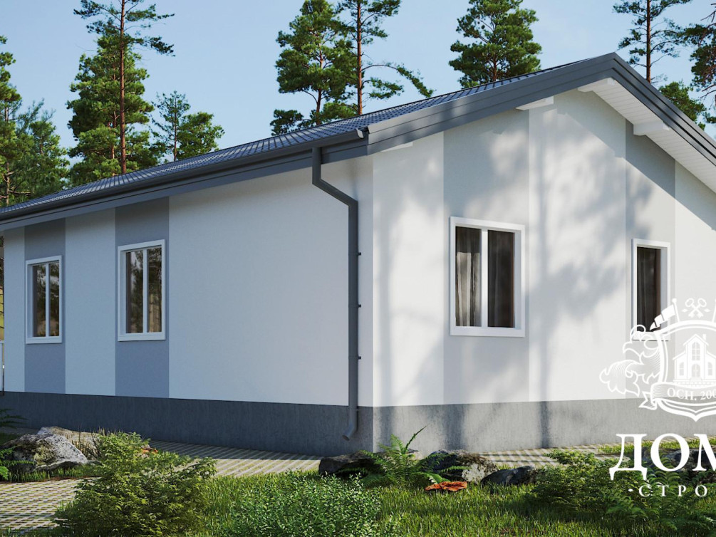 Небольшой одноэтажный дом общей площадью 97 м² воплощен в проекте «Дубки» — он сочетает в себе эстетику и практичность. В качестве материала отделки фасадов мы выбрали акриловую колерованную штукатурку Ceresit, а для настила террасы и крыльца — прочный декинг из ДПК. Строительство дома занимает от 25 дней — при этом вы можете быть уверены, что все нормативы соблюдены, а материалы обладают высоким качеством.