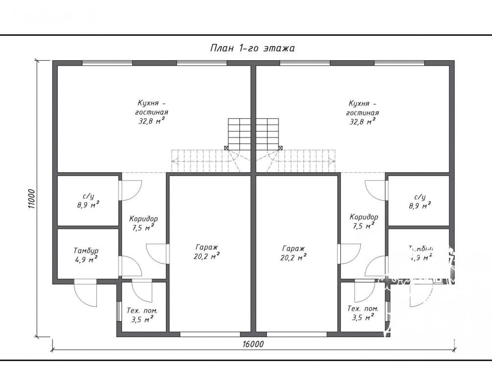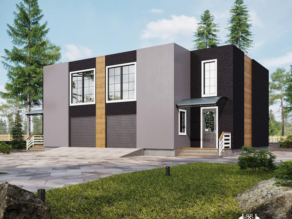 Нужен проект уютного загородного отеля или семейной гостиницы? Хорошим выбором станет проект «Дипломат», строительство такого комплекса по каркасной технологии займет от 35 дней. Общая площадь — 330,54 м², расположение комнат зеркальное, дом разделен на две половины. В каждой есть гараж, просторная кухня-гостиная, санузел, а также четыре комнаты отдыха наверху.