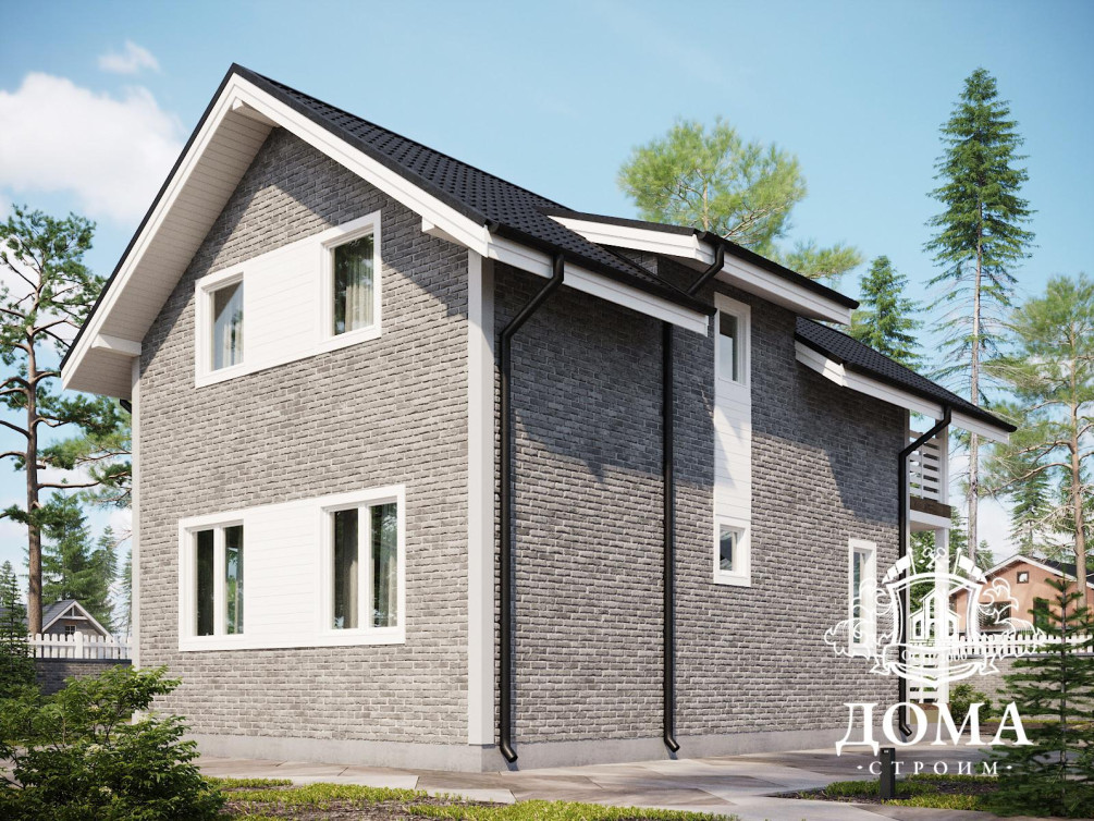 «Империя» — проект дома с мансардой, его общая площадь составляет 108 м², а строительство по каркасной технологии займет от 25 дней. Для отделки фасадов выбрана плитка HAUBERK с имитацией каменной кладки, красивая и долговечная. Планировка дома функциональная, разумно использует внутреннее пространство. Если потребуется, в нее можно внести коррективы.