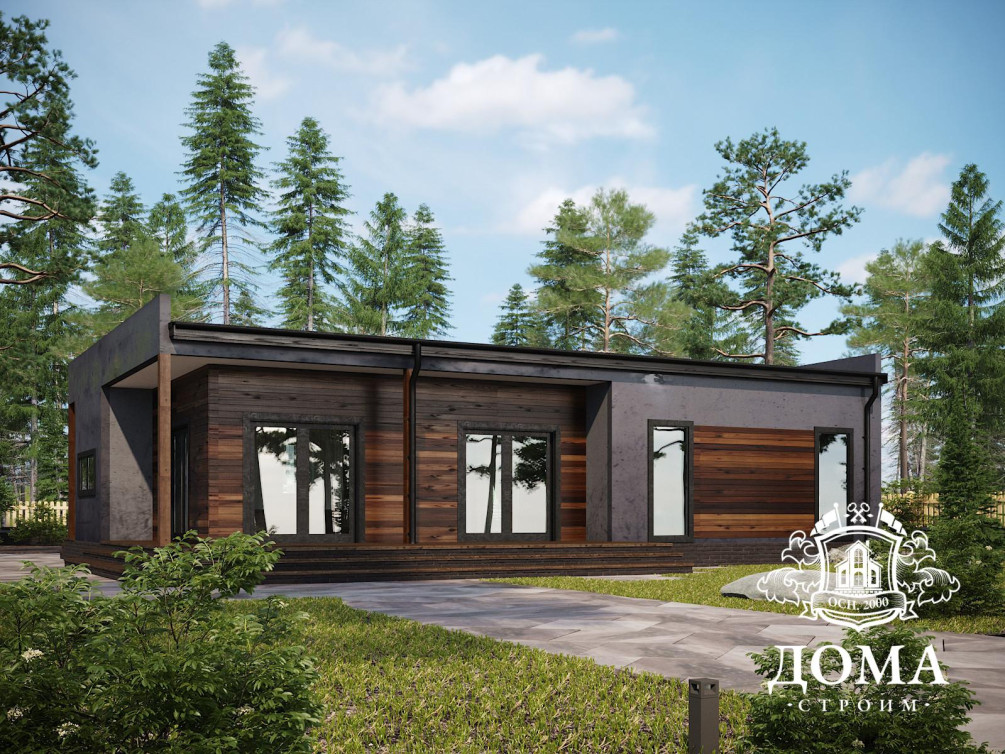 «Лотос» — это одноэтажный дом в современном архитектурном стиле. Его общая площадь с террасой составляет 145 м², а особенностью проекта является плоская крыша. Отделка фасадов комбинированная, планкеном и акриловой штукатуркой с фактурой «короед». Для строительства этого дома по каркасной технологии нам требуется от 25 дней, не считая финишных работ. Их мы тоже готовы выполнить быстро и качественно.