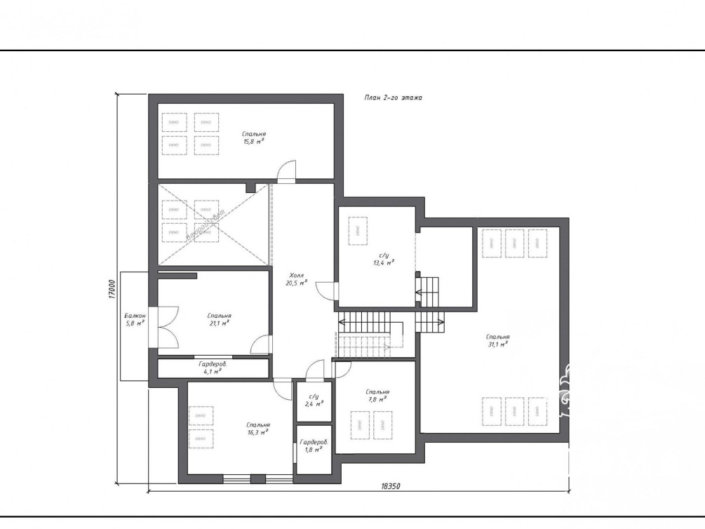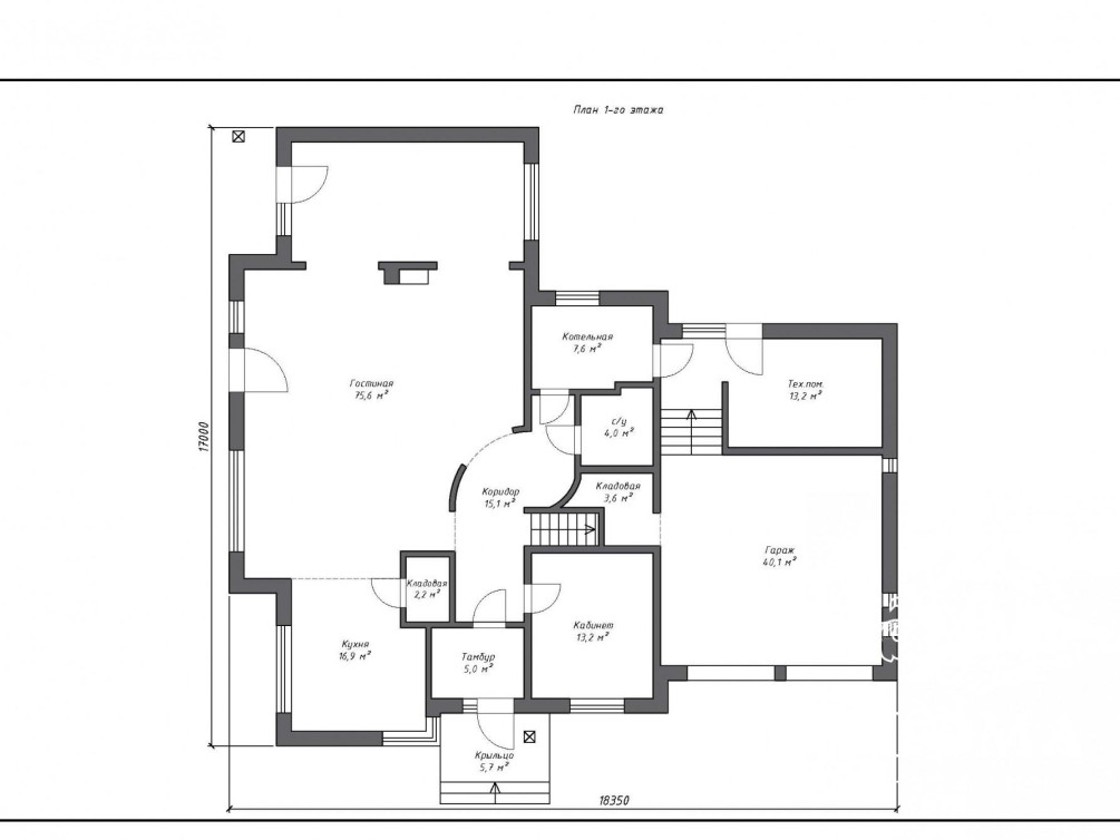 Планировка функциональная: на первом этаже — большая гостиная площадью 75,6 м2, кухня с кладовой, кабинет, котельная и санузел. Техническое помещение с отдельным входом примыкает к гаражу. На втором этаже — пять спален, два санузла. При двух спальнях есть собственные гардеробные, что очень удобно, из одной комнаты предусмотрен выход на балкон. Просторный холл со вторым светом делает интерьер уютнее. Если у вас есть пожелания к изменению планировки, просто сообщите нам об этом, и мы внесем коррективы.