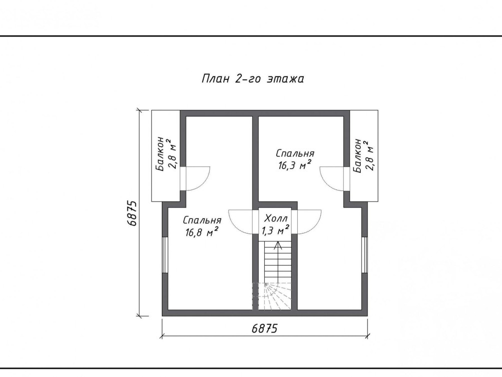 На первом этаже дома — гостиная, кухня и санузел. Вход с крыльца отделен от жилых комнат и холла тамбуром — в жару это помогает сохранить в доме прохладу, в холода, наоборот, сберечь тепло. На втором этаже расположены две спальни, обе — с балконами. Летом на балконе можно устроить зону отдыха: поставить небольшой столик и кресло, а потом наслаждаться свежим воздухом теплыми вечерами.
