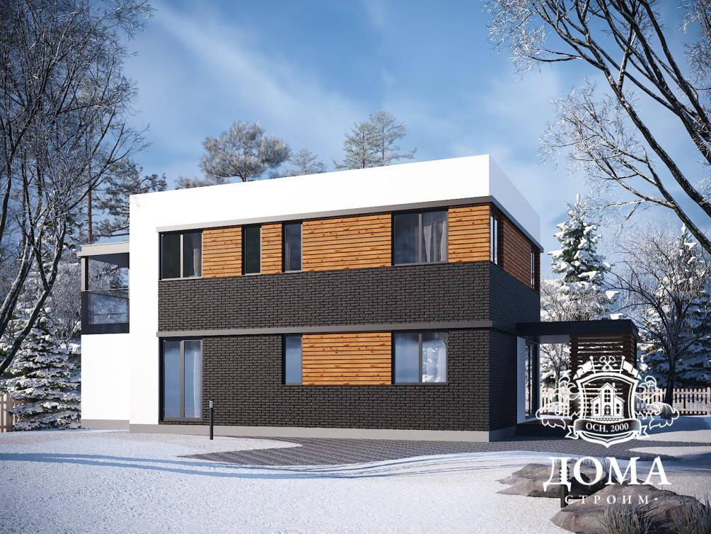 Мечтаете о большом доме? Присмотритесь к двухэтажному дому с плоской крышей по проекту «Остин», его общая площадь составляет 237,6 м². Мы построим его для вас по каркасной технологии за срок от 45 дней. Обратите внимание, в этот срок не входят финишные работы по отделке фасадов планкеном, панелями и акриловой штукатуркой Ceresit. Именно они придадут дому завершенный вид, стильный и красивый, будут выделять его на фоне остальных строений.