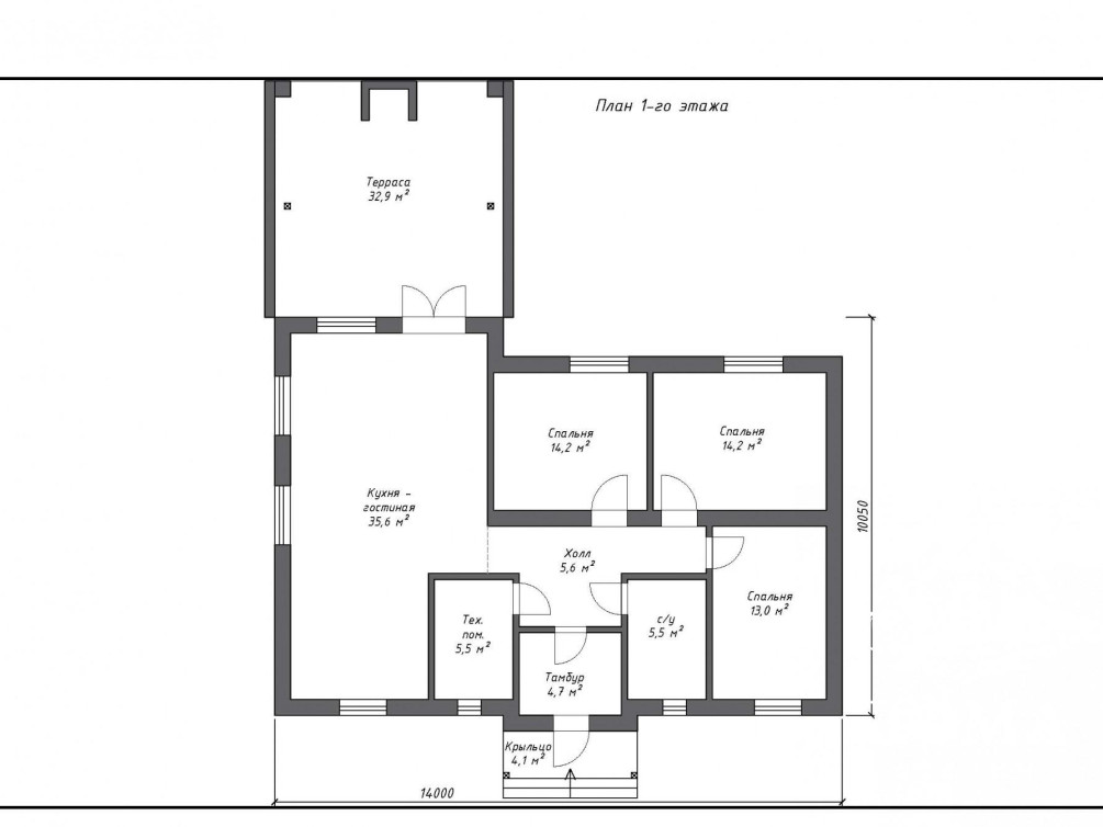 Большой одноэтажный дом мы построим по каркасной технологии за срок от 25 дней. Благодаря использованию пиломатериалов камерной сушки и строгому соблюдению технологии сборки ваш дом будет радовать надежностью, теплом и долговечностью. При желании вы можете внести коррективы в планировку, а также доверить нам выполнение финишных отделочных работ. Общая площадь дома по проекту «Традиция» — 184,69 м².