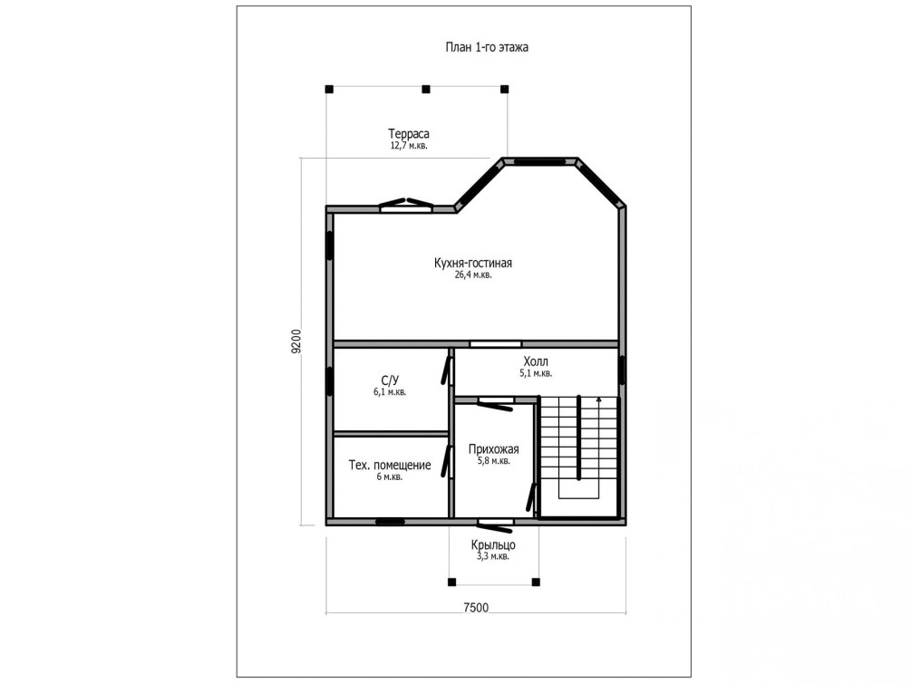 Терраса и крыльцо в площадь не входят.