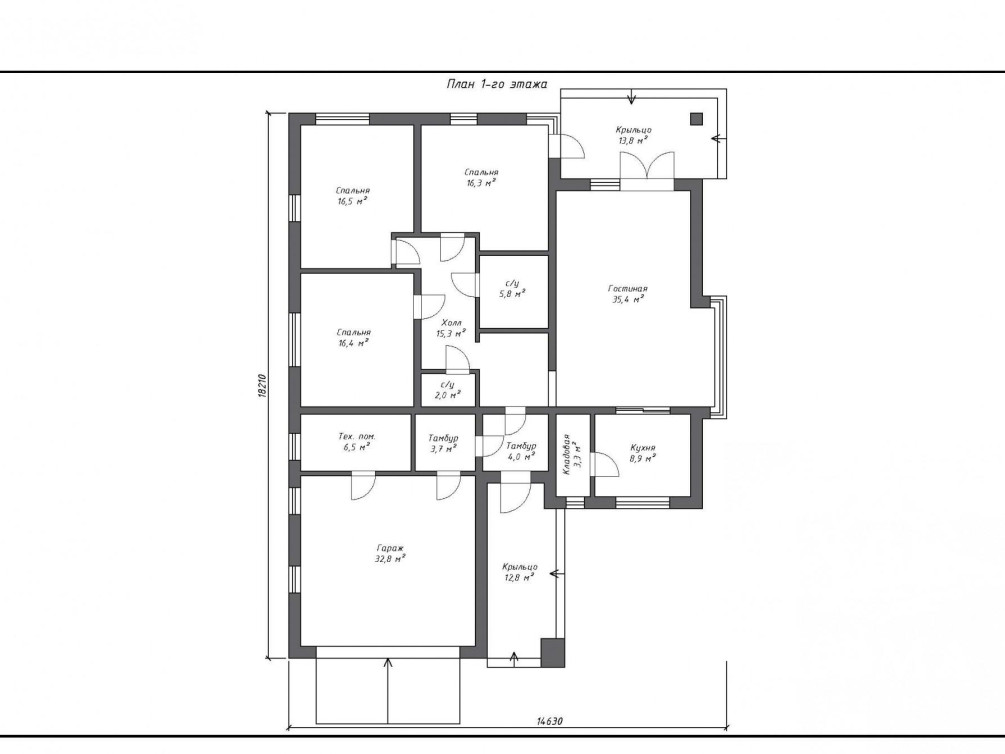 - Гараж с техническим помещением и отдельным входом в дом.
