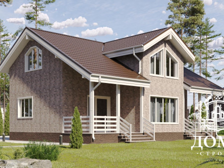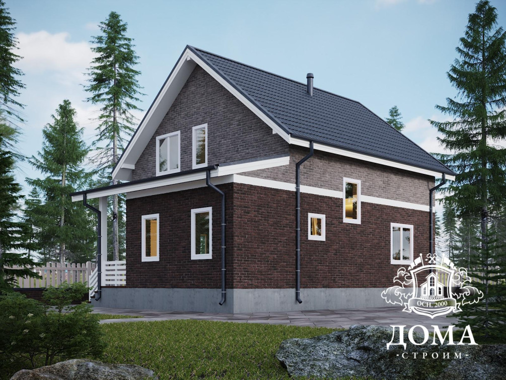 Каркасный дом с мансардой по проекту «Гарант» наша компания построит быстро, за срок от 25 дней. При этом вы можете быть уверены, что технология строительства будет соблюдена, а пиломатериал будет высокого качества, камерной сушки и обработанный антисептиком. Мы также предлагаем вам выполнение финишных работ, включая отделку фасадов плиткой производства HAUBERK, рисунок на которой имитирует кирпичную кладку. Она придаст дому красивый и завершенный вид.