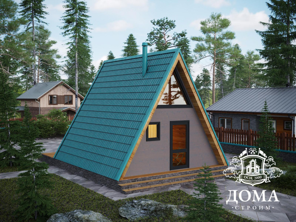 «Горный» — это проект каркасного дома для сезонного проживания. Отличное решение, если вы ищете нестандартный проект для глэмпинга или дачи, общая площадь дома — 52,2 м², поэтому его легко вписать в небольшой участок за городом. Строительство дома по каркасной технологии занимает от 15 дней, в этот срок не включены финишные работы по отделке фасадов колерованной акриловой штукатуркой, а также террасы декингом из ДПК.